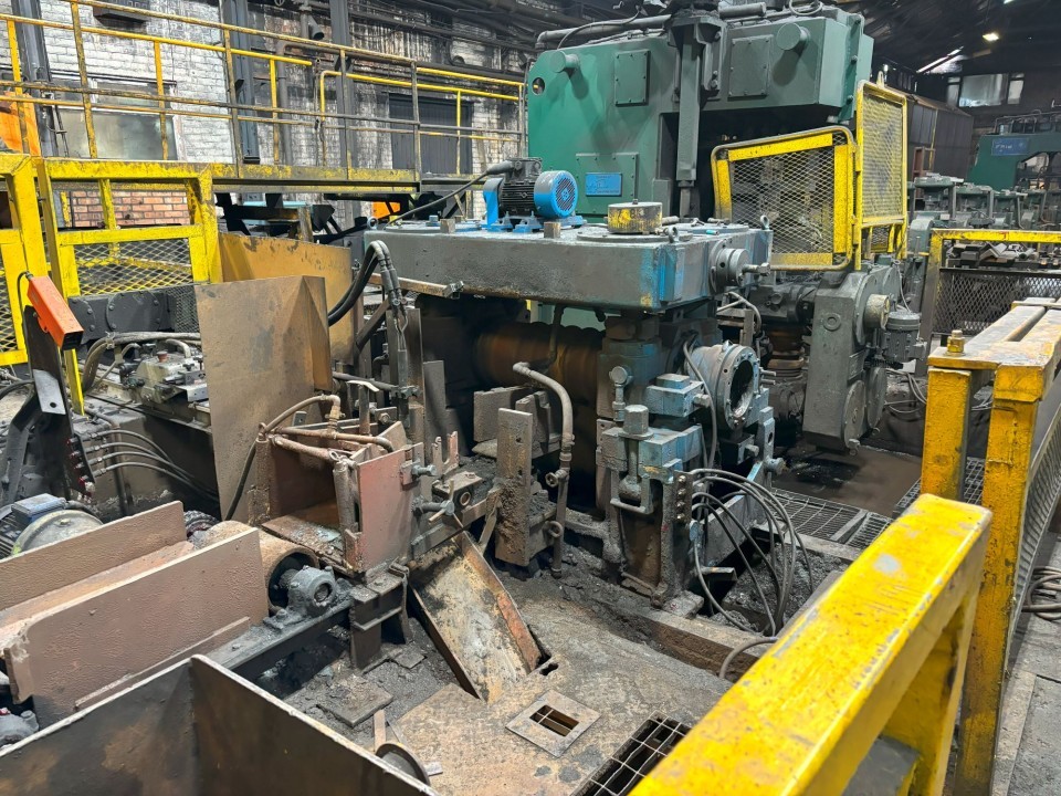 A composite well maintained hot mill, mainly manufactured by Pomini, Faim & Danieli. Feed stock 140 x 140 x 2150mm Billets. Sturdy natural gas fired reheat furnace (15tph capacity) 450mm roughing stand; 420mm 3 Hi roughing stand; stand A, horizontal roll stand with 2 cassettes; stand B vertical mill stand with 2 cassettes; Endorel Downtrain control pulpit with speed control/cascade system; stands 1-5 horizontal mill stands; stand 6 vertical; stand 7-8 crosstrain horizontal incorporating 2 x repeat; stand 9 horizontal finishing; stand 10 vertical finishing; stand 11 horizontal finishing; pre cooling bed rotary chopper; walking beam indexed cooling bed; cut to length shear; 5T cantilever crane; automated bundling station.