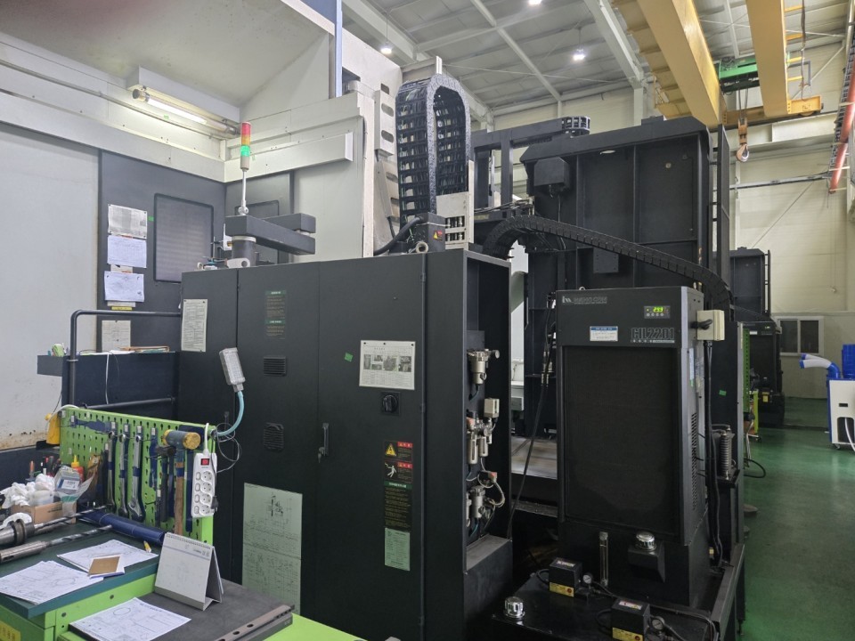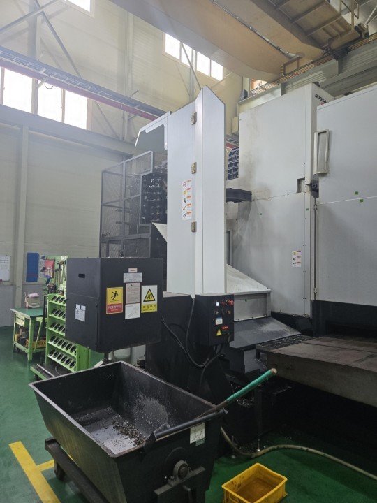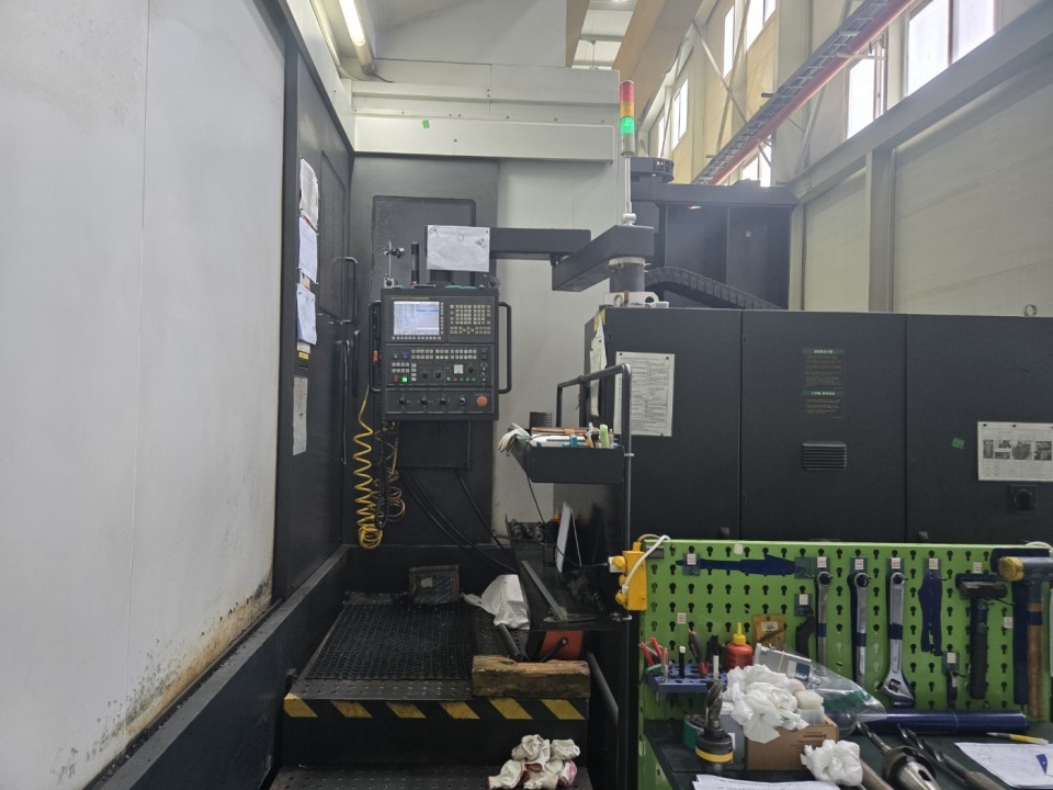 The 2013 Doosan DBC-130II is a powerful CNC borer equipped with two 1600 x 1600 mm pallets featuring 0.001° indexing. It offers large travels of 3000 x 2250 x 2000 x 700 mm, supported by a 250 mm rising block on the Y-axis. The 130 mm BT50 spindle runs at 2,500 rpm and is driven by a 22/26 kW motor, with 70-bar through-spindle coolant for demanding cuts. With XYZ scales, a 90-tool ATC, full enclosure, chip conveyor, and Fanuc 31iA control, it delivers accuracy, capacity, and efficient workflow for heavy machining.