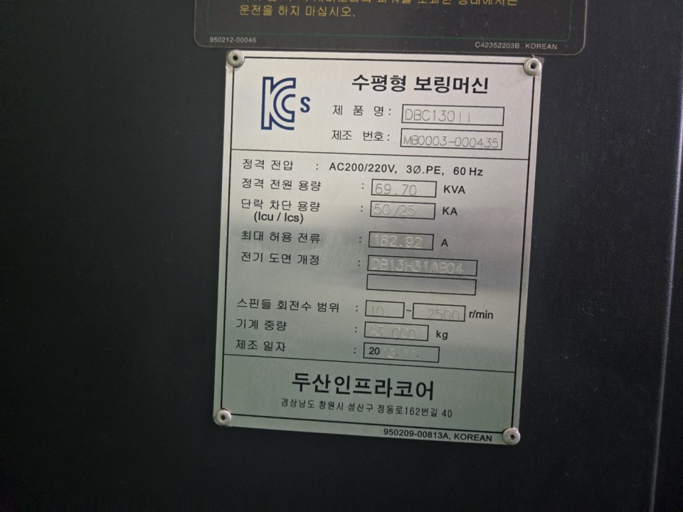 2013 Doosan DBC-130II CNC Borer with 2 pallets