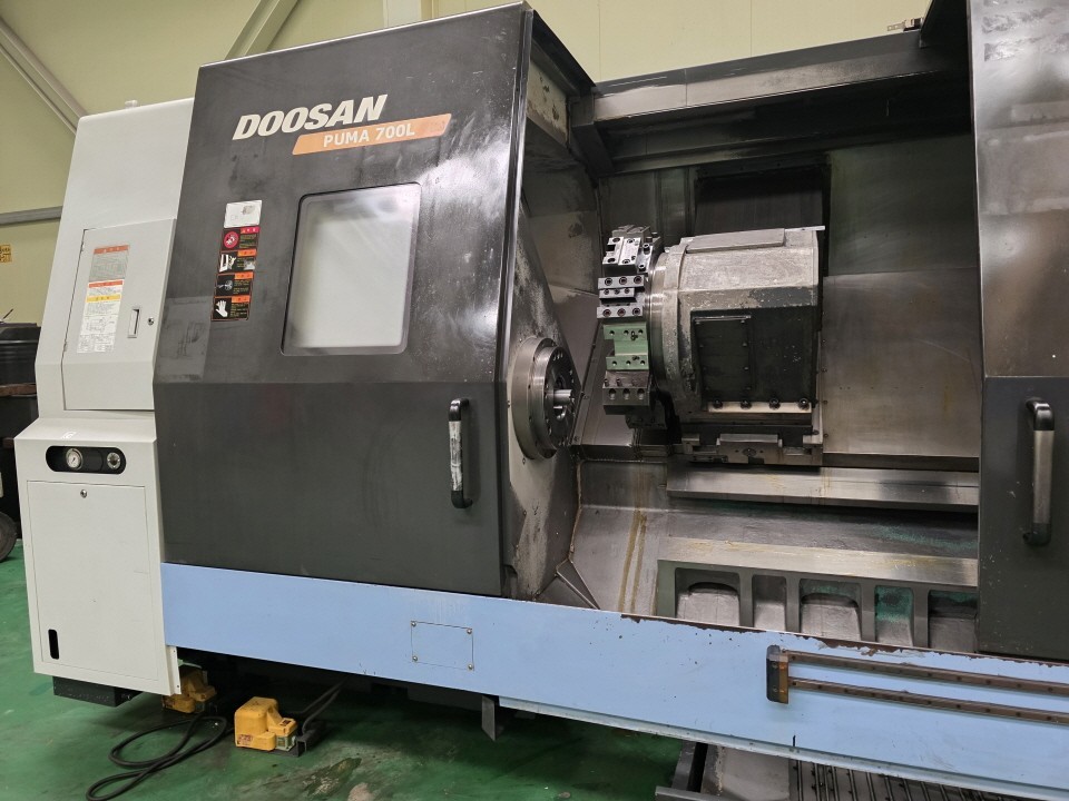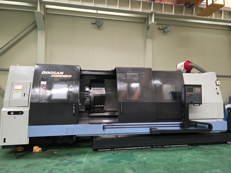 This 2013 Doosan Puma 700L CNC lathe is a powerful and versatile machine, ideal for large turning applications. It offers a maximum turning diameter of 900 mm and a cutting length of 3,200 mm, supported by a 12-position turret for efficient tool changes. The machine features a Fanuc 32i-A control, chip conveyor, and will be fitted with a new 32” hollow spindle hydraulic chuck. Touch-up painting has been carried out, giving the machine a well-presented finish.