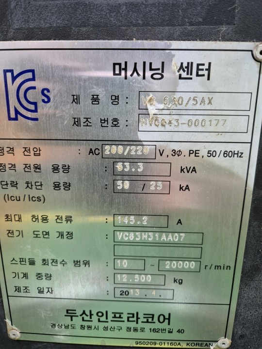 2013 Doosan VC630 5AX 5 axis machine