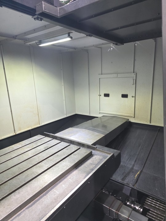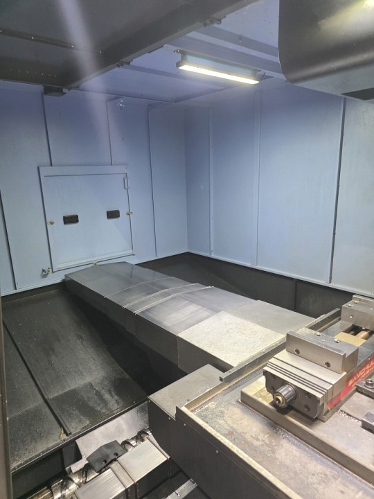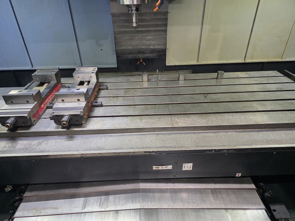 This 2021 Doosan Mynx 9500 Vertical Machining Centre is a powerful and well-equipped machine designed for large and demanding machining work. It features a heavy-duty 2500 x 950 mm table with a 3,500 kg load capacity and generous XYZ travels of 2500 x 950 x 850 mm. The BT50 spindle, 6,000 rpm gearbox drive and 18.5/22 kW motor deliver strong cutting performance. Additional highlights include a 40-tool ATC, 20 bar spindle-through coolant, chip conveyor, Fanuc control, and vices included on the table.