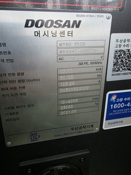 2021 Doosan Mynx 9500 Vertical Machining Center