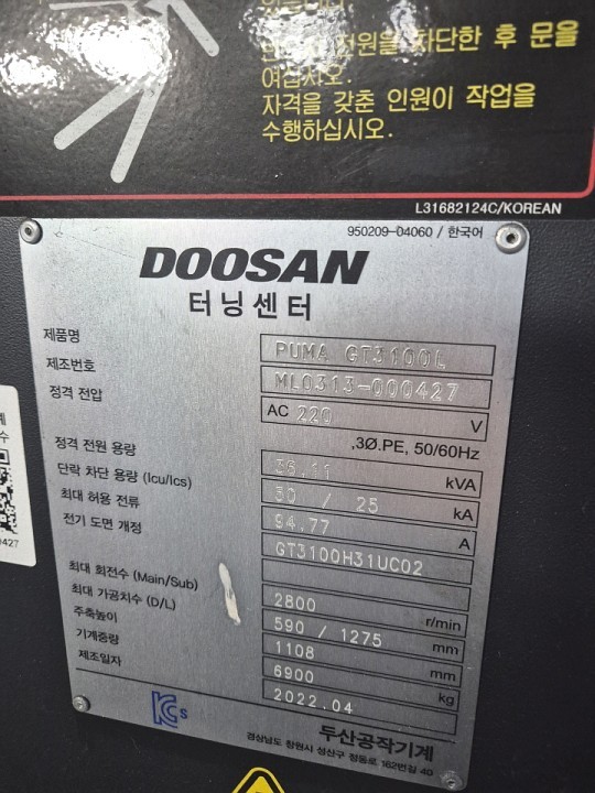 2022 Doosan GT3100L CNC Lathe
