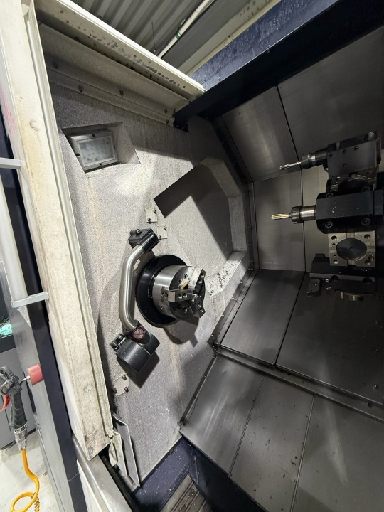 The 2023 Hwacheon Hi Tech 230A YMC CNC Turn Mill is a versatile and reliable machine, ideal for high-precision turning and milling operations. It offers a maximum cutting diameter of 400 mm and a cutting length of 340 mm, with a 76 mm spindle bore and 65 mm bar capacity. Powered by a high-performance spindle and milling motor, it delivers excellent productivity. Features include an 8” chuck, tool presetter, milling holders, chip conveyor and a user-friendly Fanuc control.