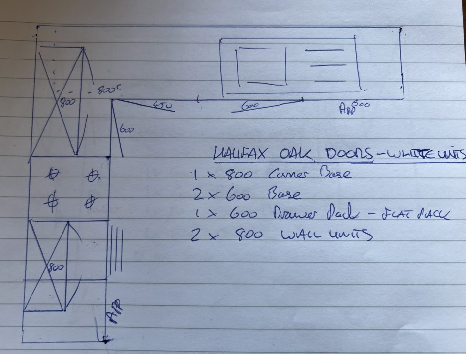 Kitchen Factory Clearance - Halifax Oak, Slab Doors, White Ridged & Flat Pack Units, Taps, Flat Pack Kitchen Unit Sets to suit various configurations